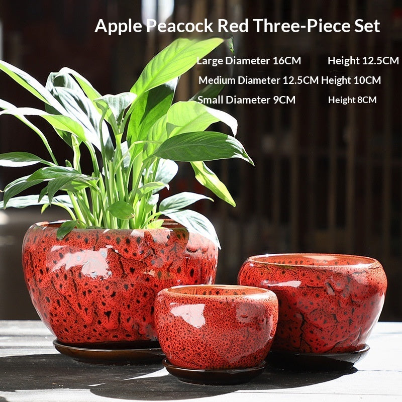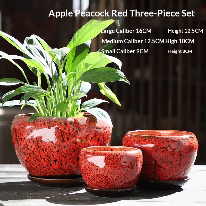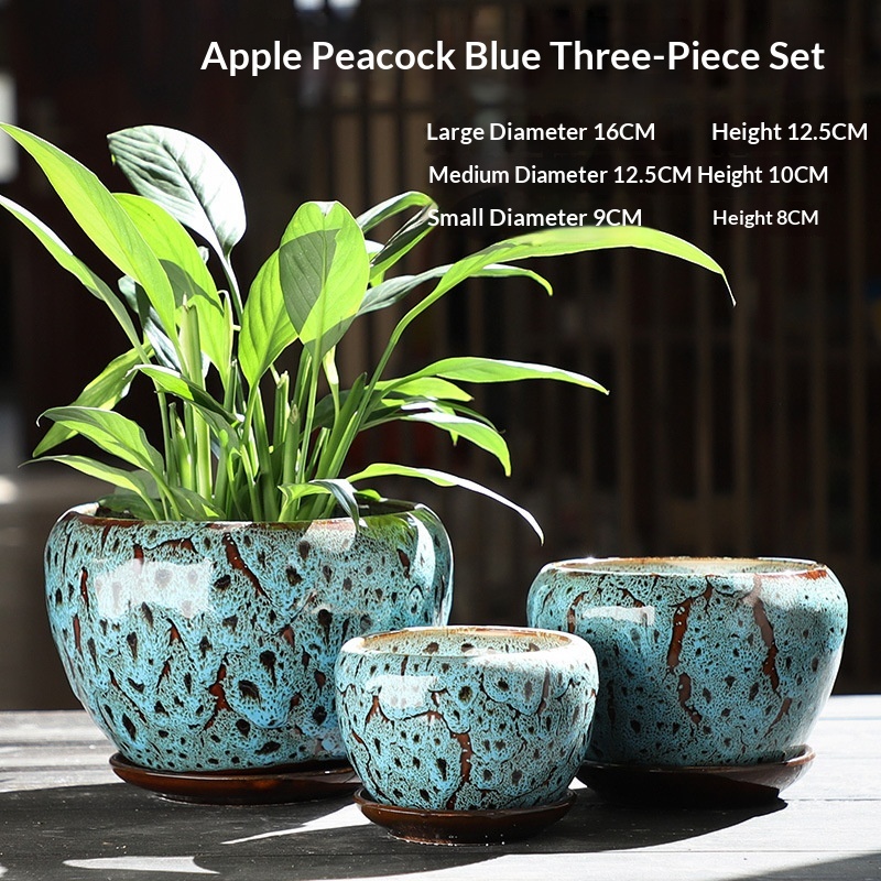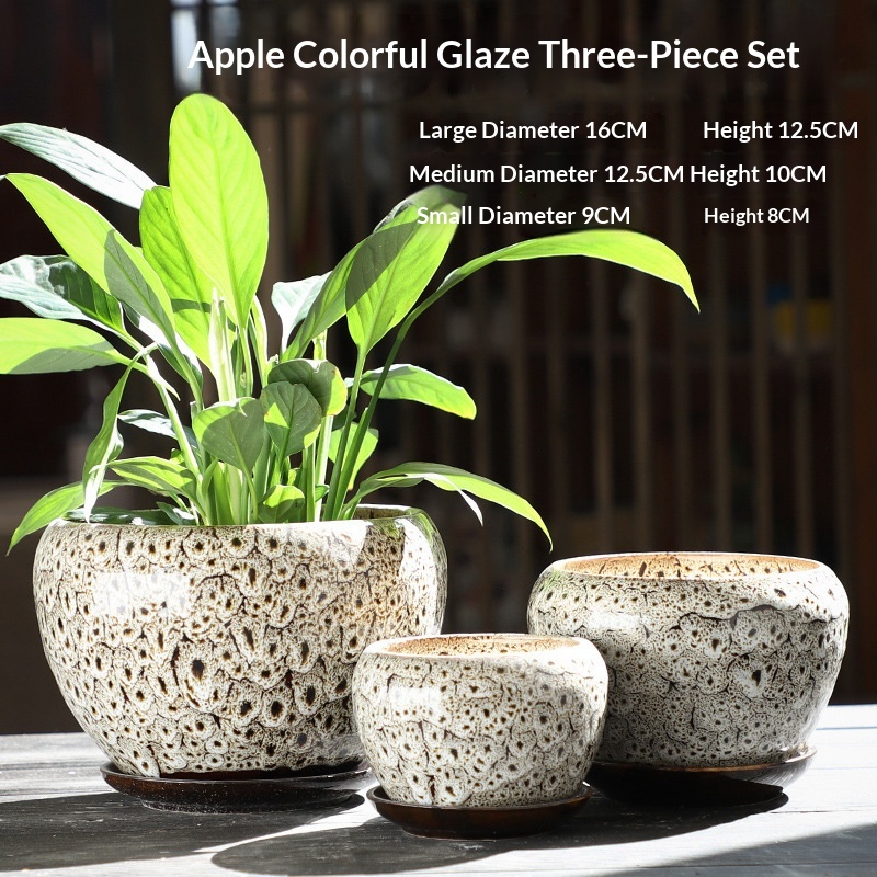 Colors: Apple {Peacock Blue} three-piece set, Apple {Peacock Red} three-piece set, Apple {Peacock Yellow} three-piece set, Apple {Colorful Glaze} three-piece set, Apple Peacock Green three-piece set, Apple Blue Flow Glaze three-piece set, Apple Blue Snowflake Glaze three-piece set, Apple Light Brown three-piece set, Apple Purple Cloud three-piece set, Apple Sky Blue three-piece set, Apple Wine Red three-piece set, Apple Amethyst three-piece set, Apple {Gemstone Blue} three-piece set, Apple Snowflake with Red Dots three-piece set, Apple Vintage Flow Glaze three-piece set, Apple Black Flow Glaze three-piece set, Apple Green Flow Glaze three-piece set